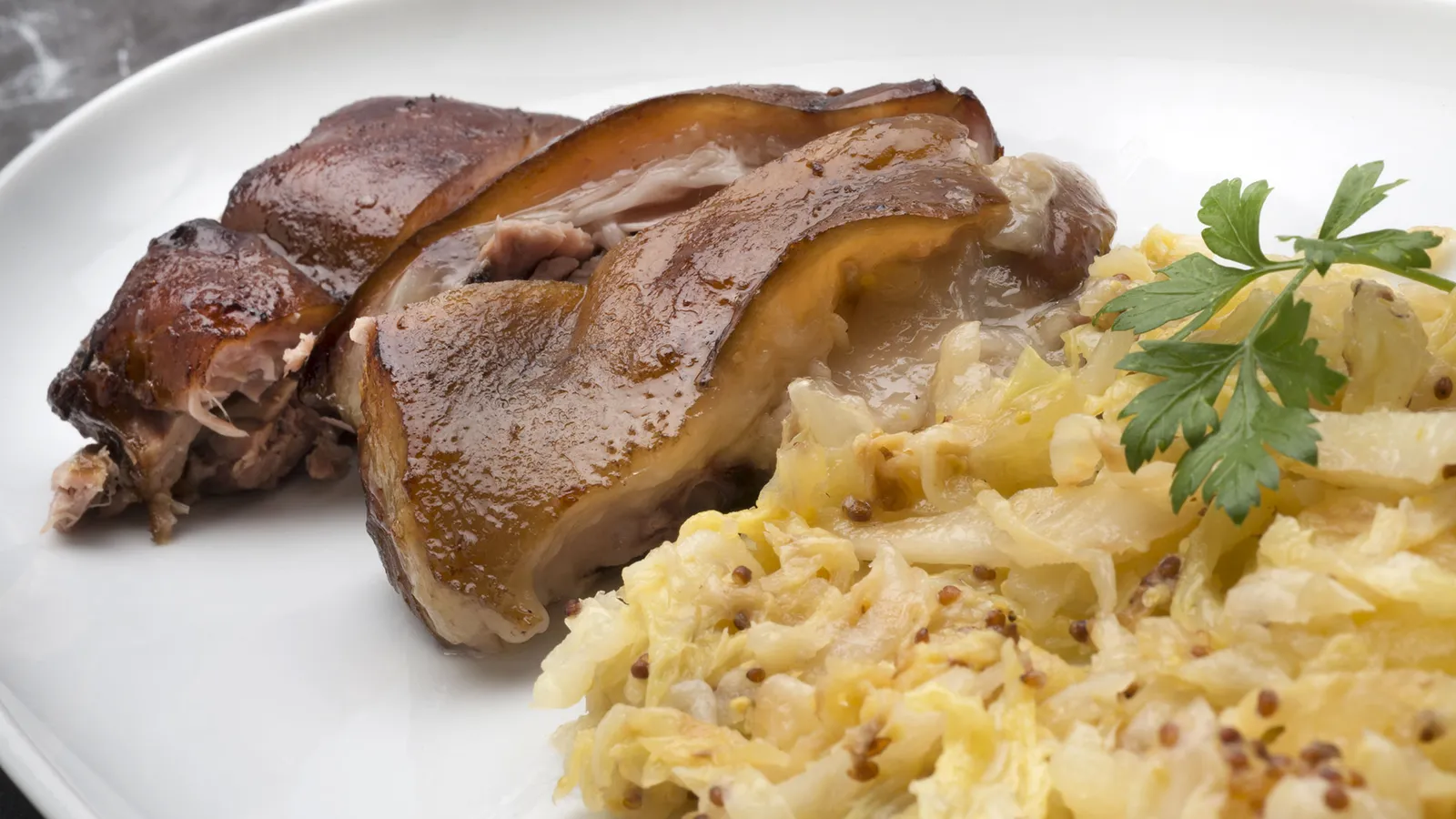 Karlos Arguiñano elabora una receta de codillo a la cerveza y miel asado en el horno acompañado de berza salteada con patata y mostaza.