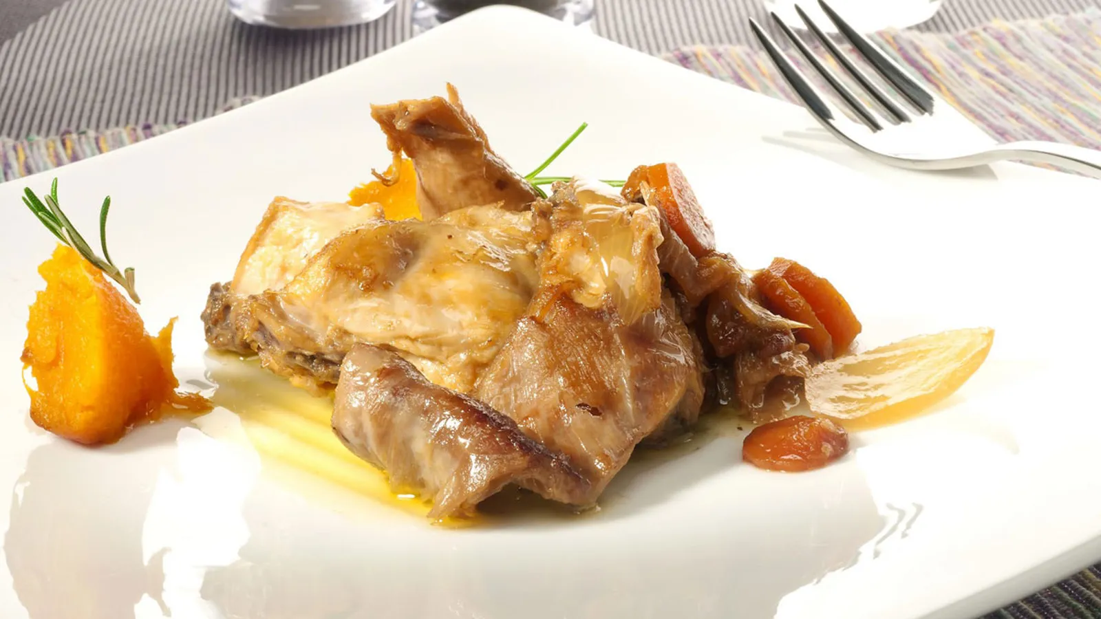 Conejo en escabeche con boniato asado