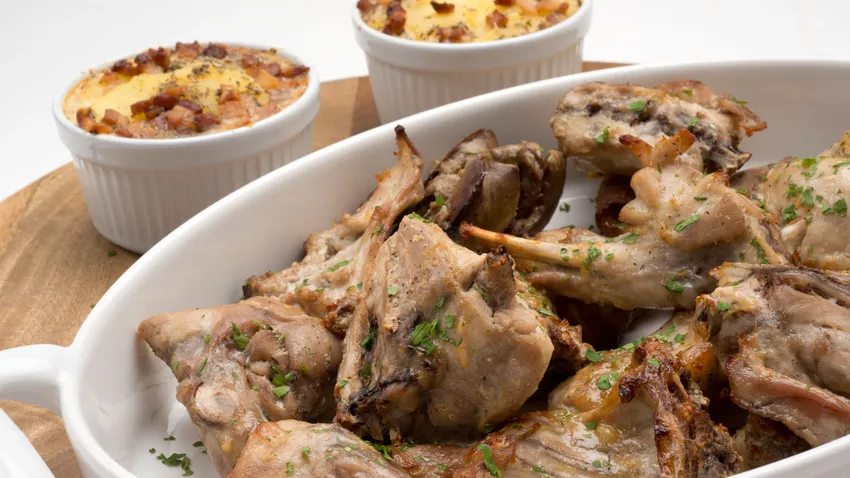 Conejo con patatas gratinadas