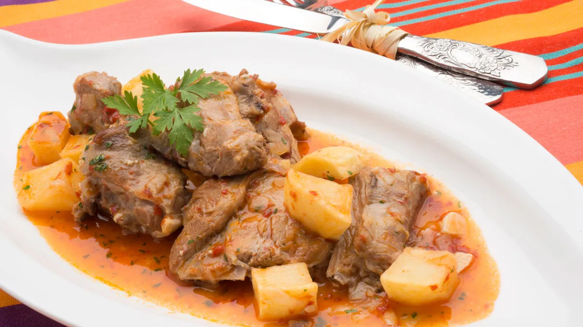 Receta de Karlos Arguiñano de cordero al chilindrón, un guiso de cordero con patatas y pimientos choriceros. Esta receta regional es típica de la cocina navarra.