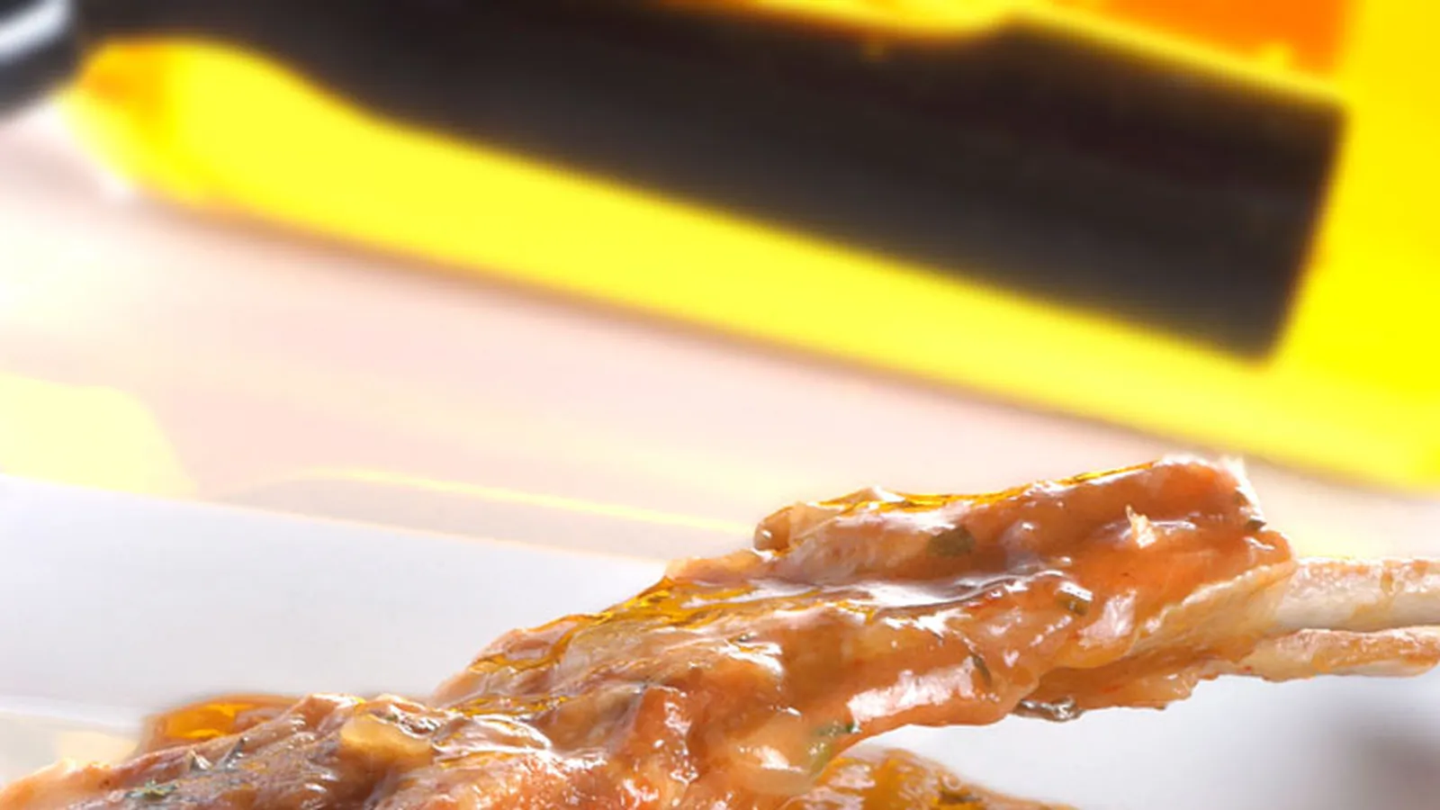 Elaboración de la receta de cordero al chilindrón con patatas fritas