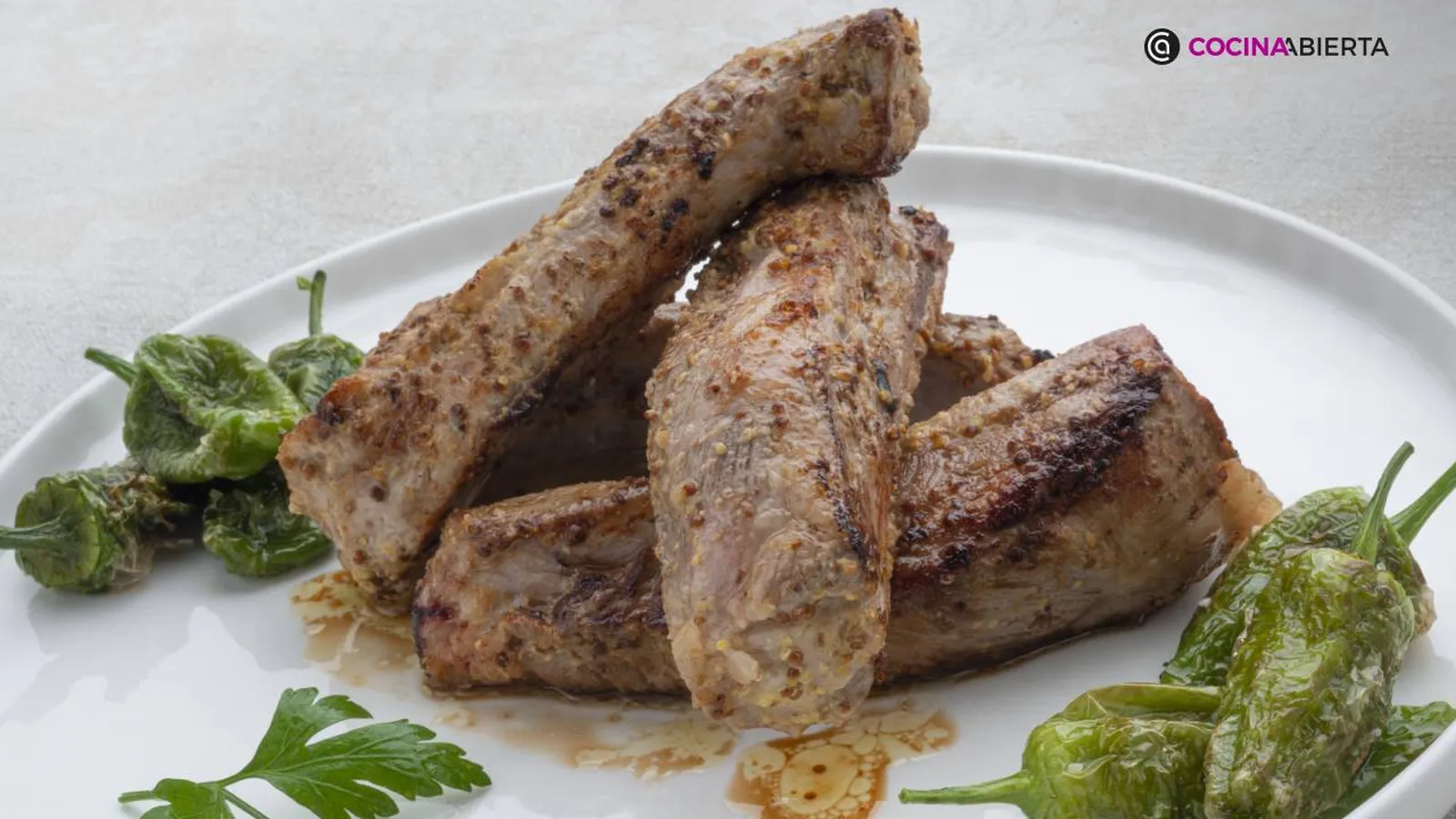Vamos con un bocado muy agradable como es la costilla de cerdo, una carne muy rica, sabrosa y económica, que aliñaremos y acompañaremos de pimientos verdes de Gernika o del Padrón.