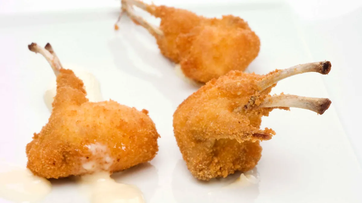 Receta originial y rápida: costillitas de conejo con alioli, un plato sencillo y original de costillas de conejo rebozadas y servidas con la salsa ali-oli, de Bruno Oteiza.