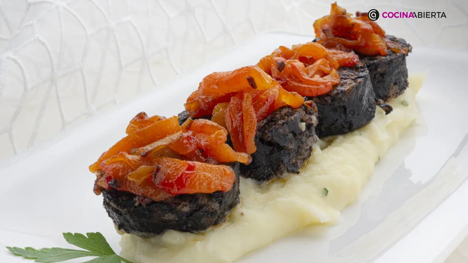 Receta de morcilla con puré de patata y pimientos paso a paso