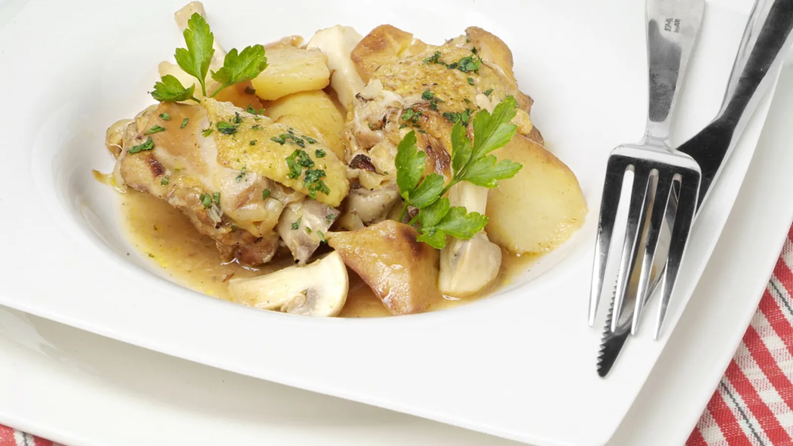 Estofado de pollo con champiñones y patatas