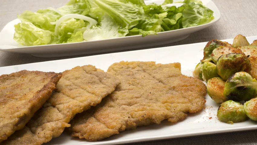 Karlos Arguiñano elabora un plato de filetes redondo empanados acompañados de coles de Bruselas y ensalada de lechuga y cebolleta.