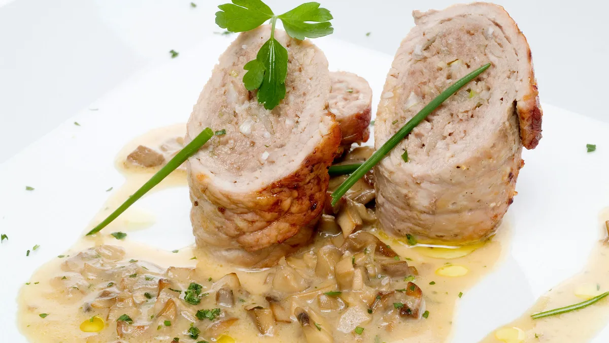 Receta de Filetes rellenos con salsa de champiñones. Filetes rellenos de carne picada y chalotas con una salsa de champiñones elaborada por Bruno Oteiza.