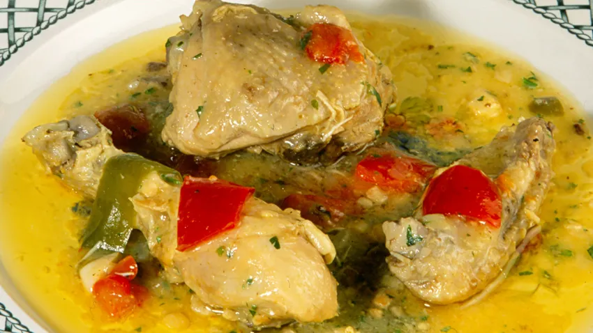 Receta de Karlos Arguiñano de guiso de pollo con verduritas y almendras.