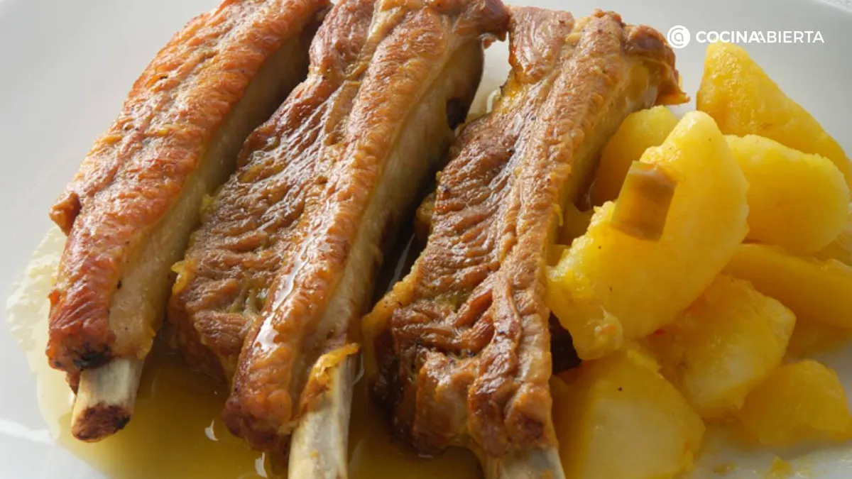 Aunque las costillas al horno están deliciosas, en estareceta te propongo un guiso rápido en la olla express. Descubre cuál es el tiempo de cocción perfectopara conseguir una carne jugosa y unas patatasguisadas tiernas. Sigue la receta paso a paso de Karlos Arguiñano y nofallarás.