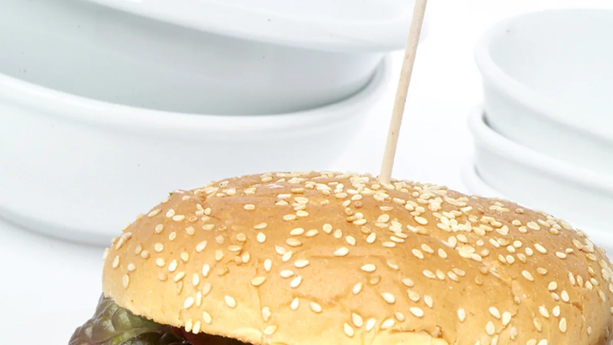 Receta de hamburguesa gourmet, deliciosa combinación de carne picada de vaca, mousse de pato y trufa, acompañado de cebollas en tempura, de Enrique Fleischmann.