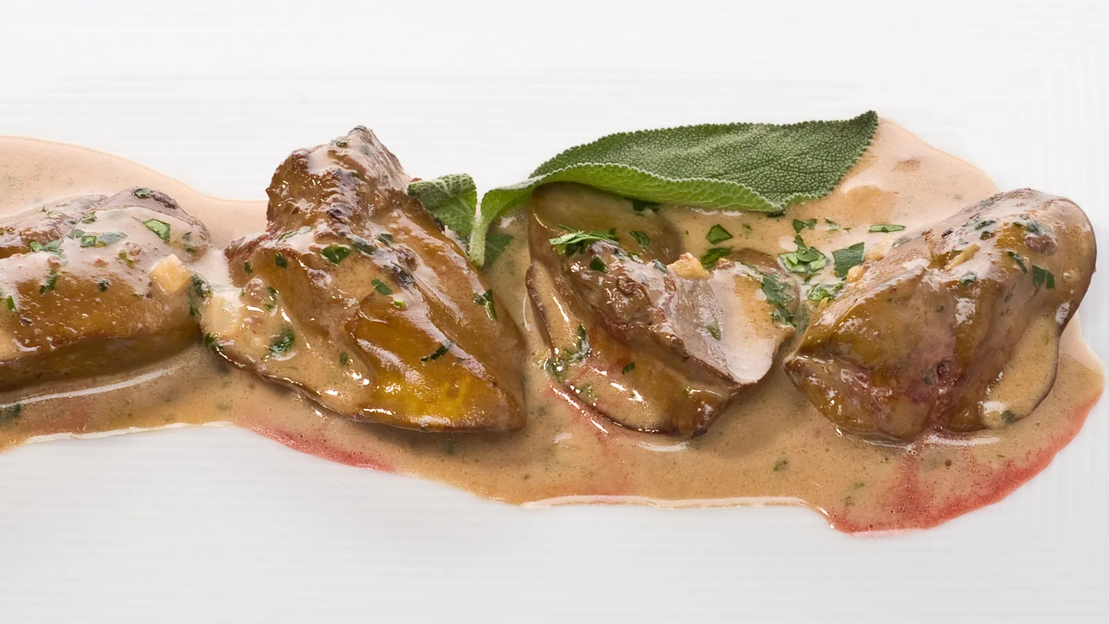 Sirve los higaditos con su salsa. Espolvorea con perejil y decora con una hojita de salvia.