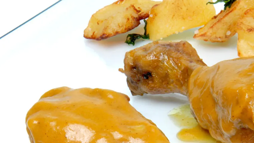 Receta de jamoncitos de pollo al curry, Karlos Arguiñano prepara muslos de pollo con salsa de curry y acompañado de patatas fritas.