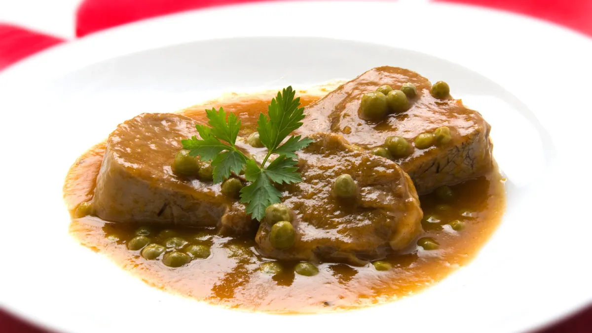 Lengua en salsa con guisantes