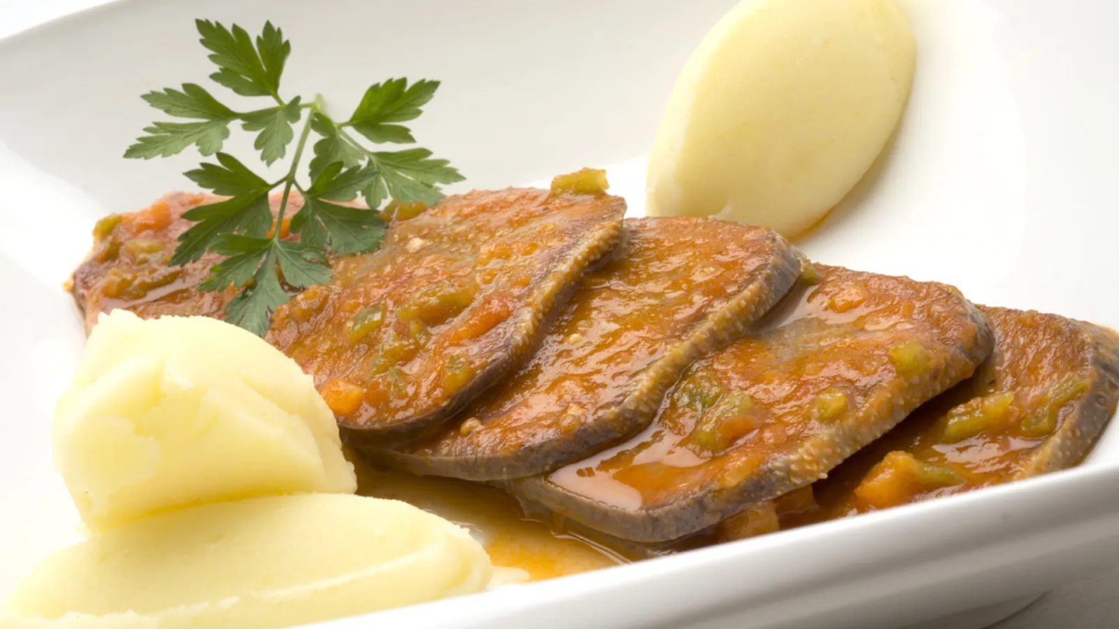 Elaboración de la receta Lengua en salsa de tomate con puré de patatas
