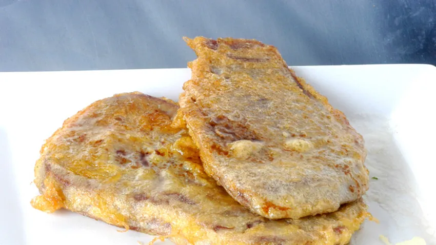 Pela la lengua en templado, corta en filetes, sazona y rebózalos en harina y huevo batido. Fríe en aceite bien caliente con dos dientes de ajo. Reserva.