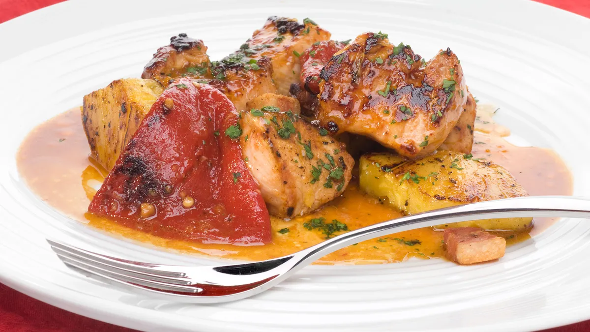 Lomo de cerdo a la barbacoa con piña y pimientos
