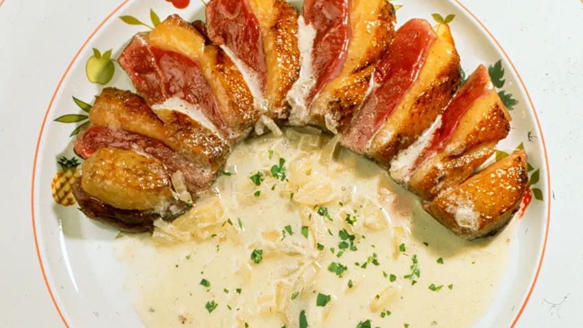 Magret de pato con vino espumoso