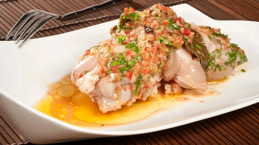 Elaboración de las manitas de cerdo a la vinagreta