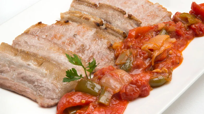 Panceta y lomo con piperrada