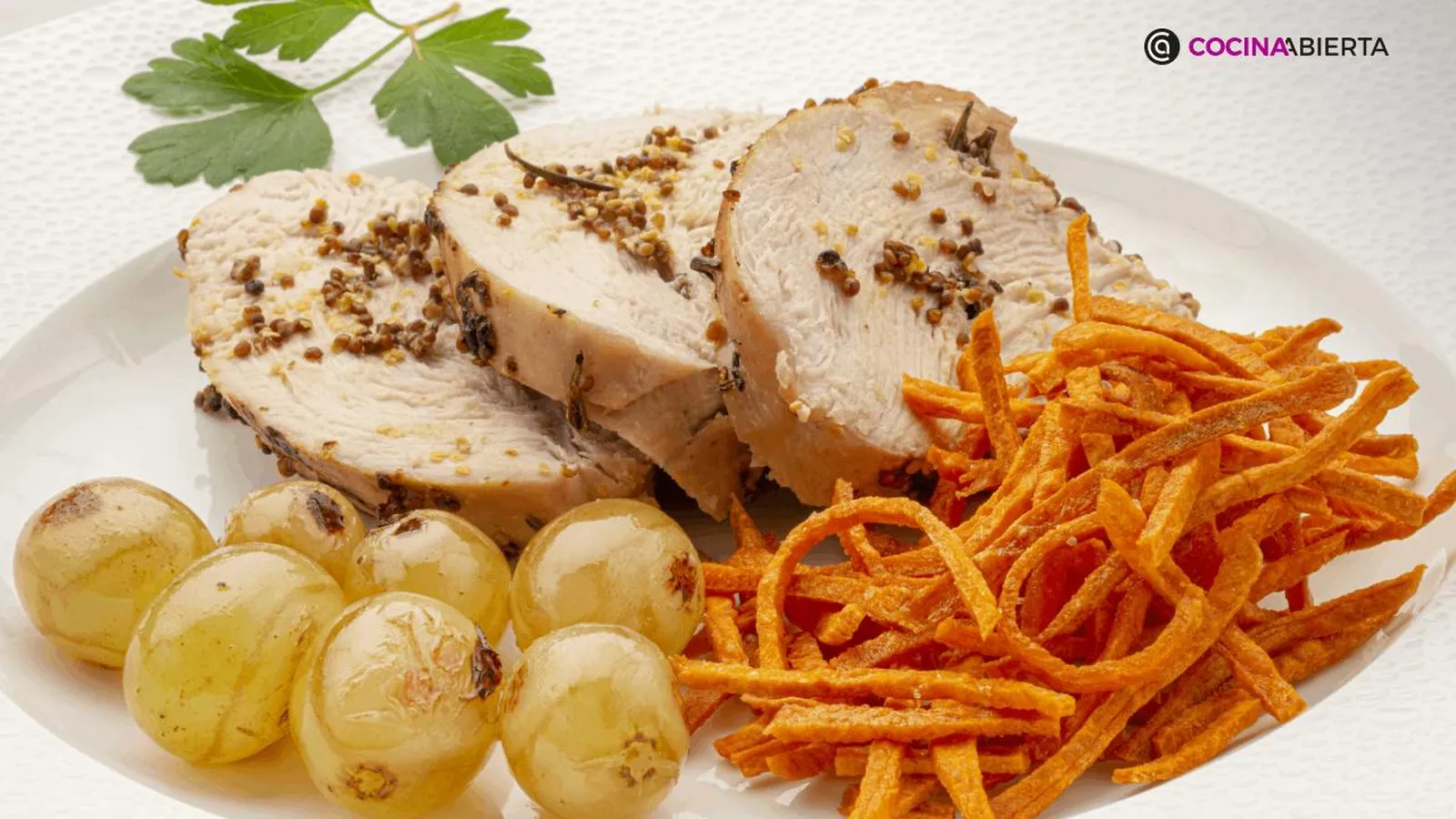 Receta de pavo a la mostaza con uvas y boniato paso a paso