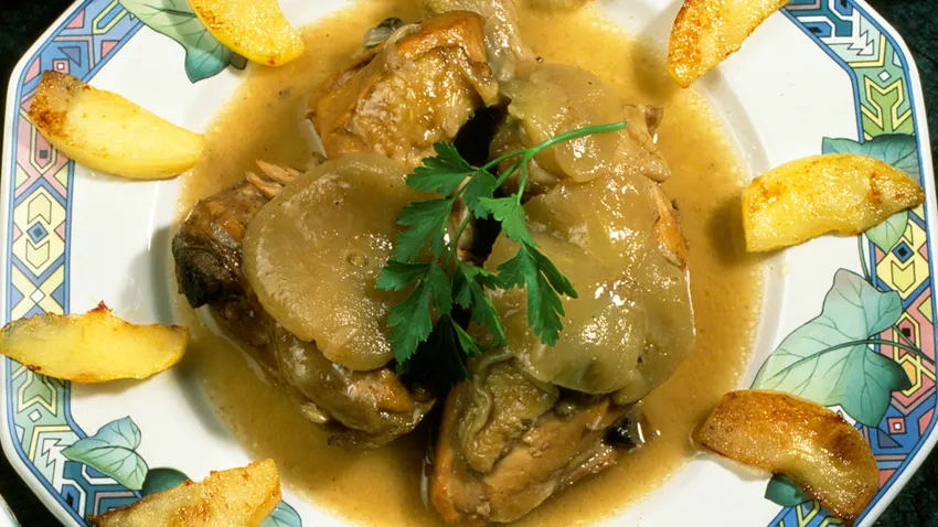 Pollo escalfado a la sidra