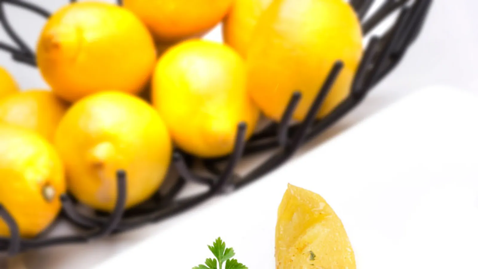 Sirve un muslo de pollo con dos trozos de patata por ración. Acompaña con la salsa de cebolla, limón confitado y aceitunas. Decora con una ramita de perejil.