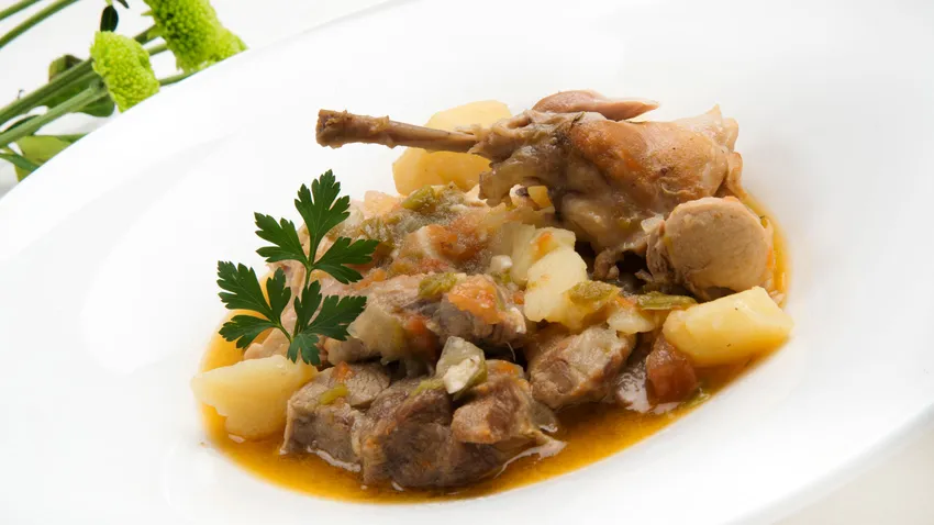 Karlos Arguiñano prepara rancho riojano, un guiso de carne de cordero y conejo con patatas tradicional de la cocina de La Rioja.