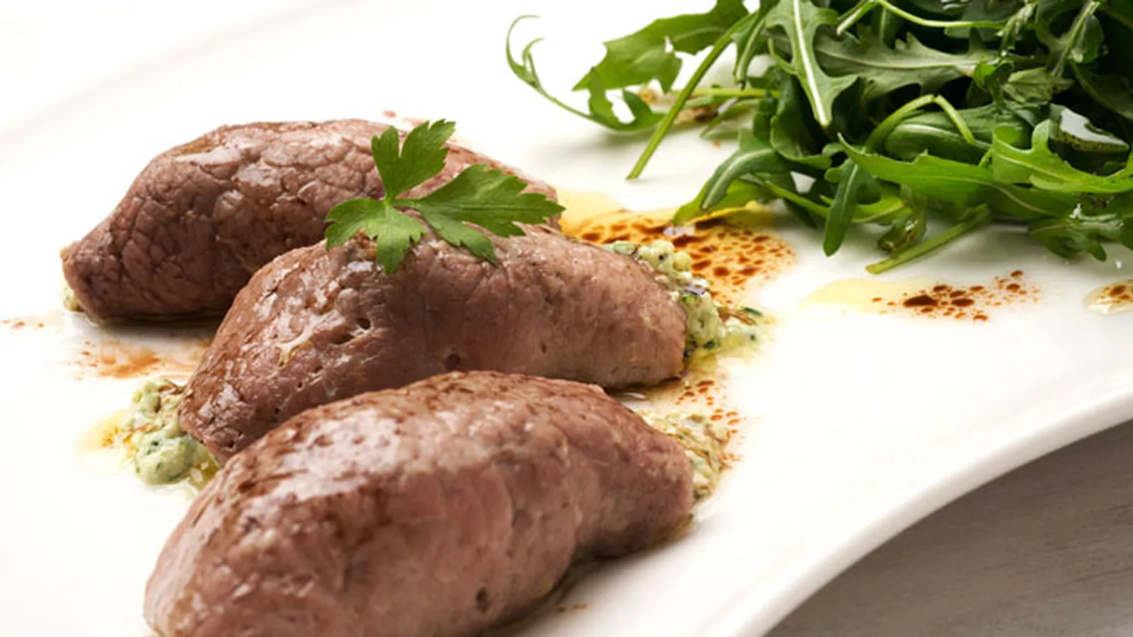 Rollitos de carne con ensalada de rúcula