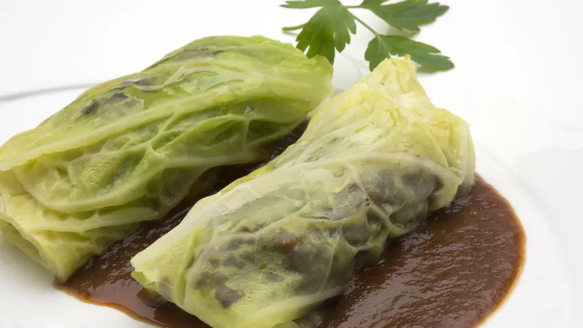 Karlos Arguiñano elabora una receta de hojas de col rellenas de morcilla de arroz, puerro y calabacín acompañadas de salsa de vino y verduras.