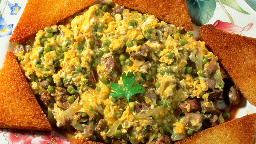 Revuelto de higadillos y mollejas de pollo