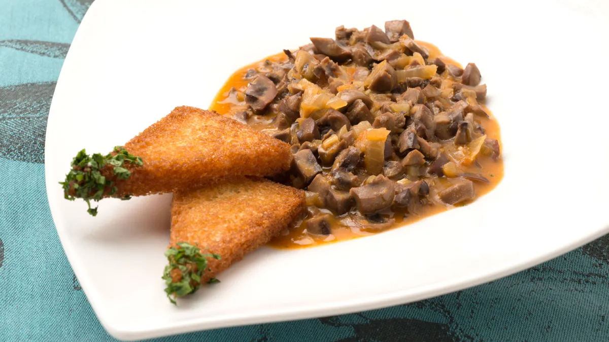Sirve los riñones y acompaña con los panes fritos y con la pasta.