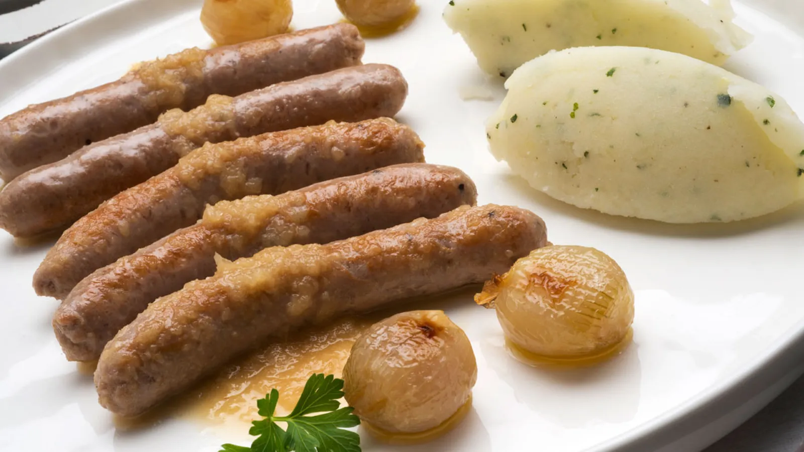 Receta de Karlos Arguiñano de salchichas a la cerveza acompañadas de puré de patatas y chalotas confitadas, un plato con sabor alemán.
