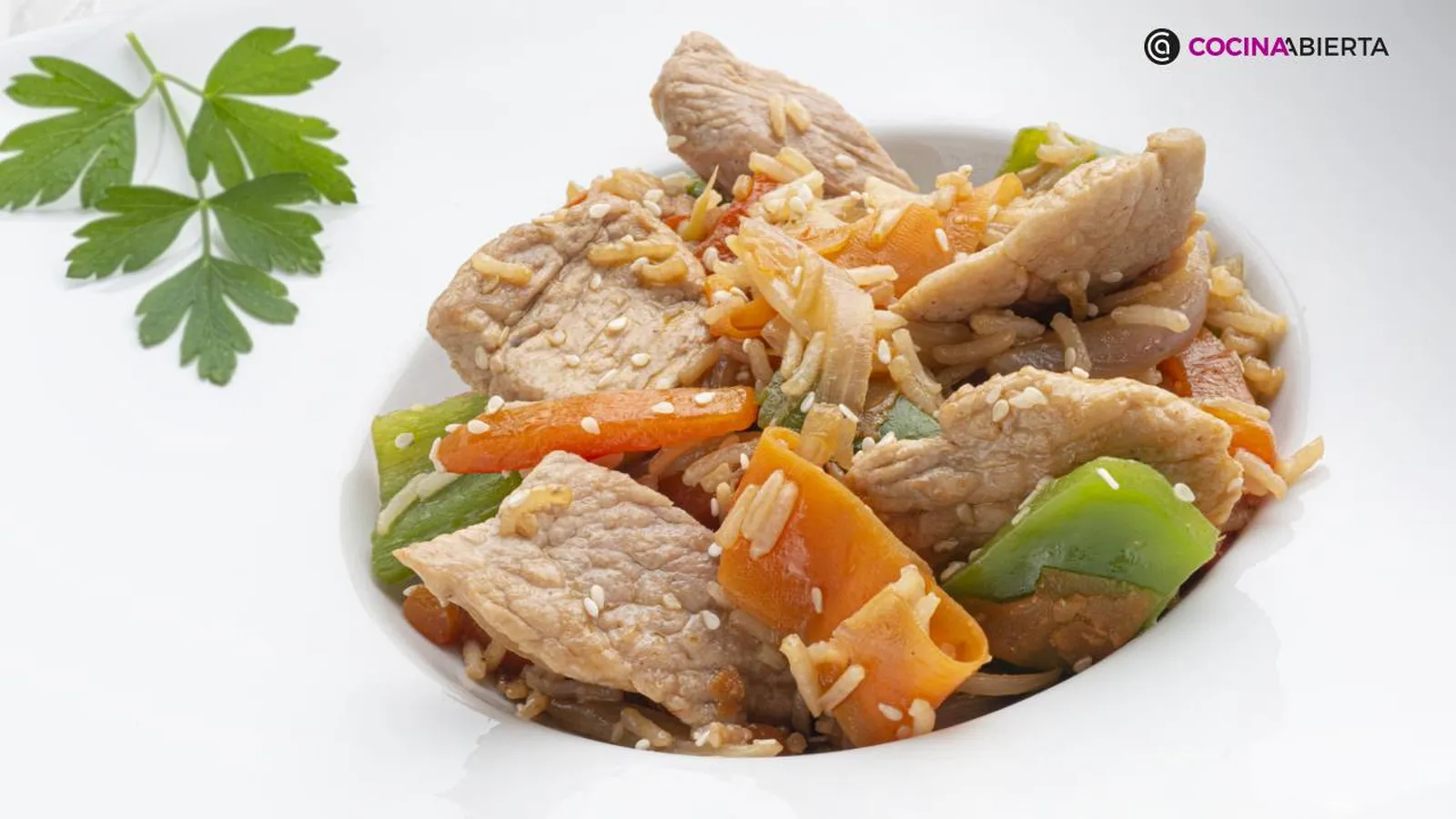 Receta de salteado de cerdo y arroz con sésamo paso a paso