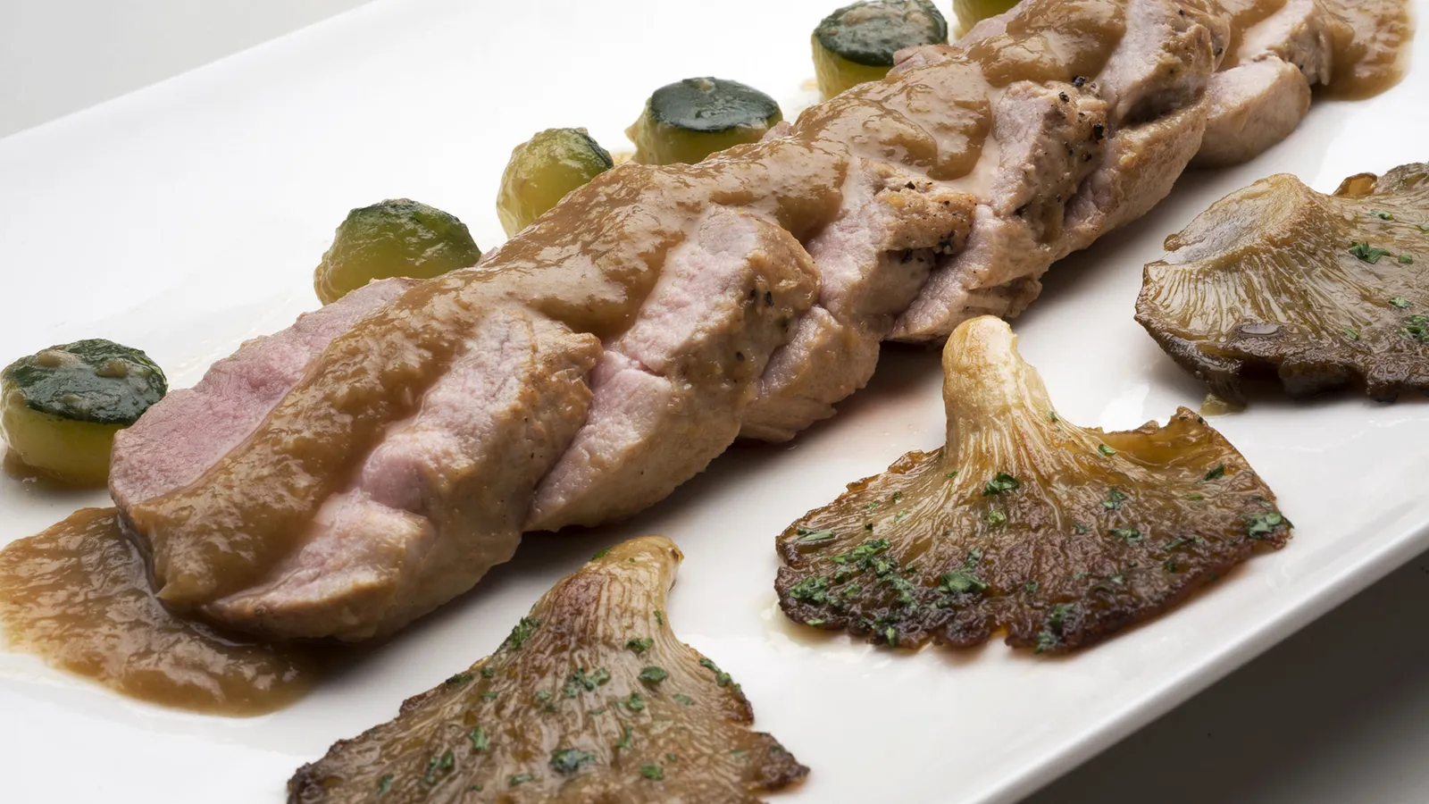 Karlos Arguiñano elabora un plato de solomillo de cerdo con salsa de setas, bolitas de calabacín al vapor y setas salteadas.