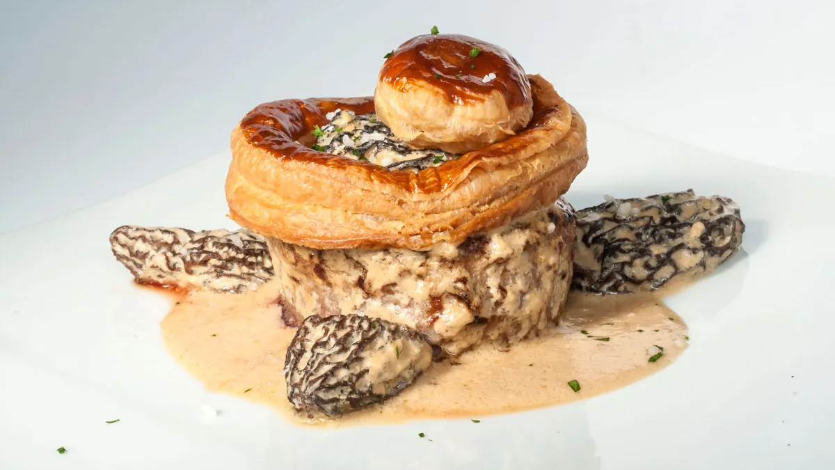 Receta de Bruno Oteiza de solomillos de ternera acompañados de morillas en salsa y hojaldre.