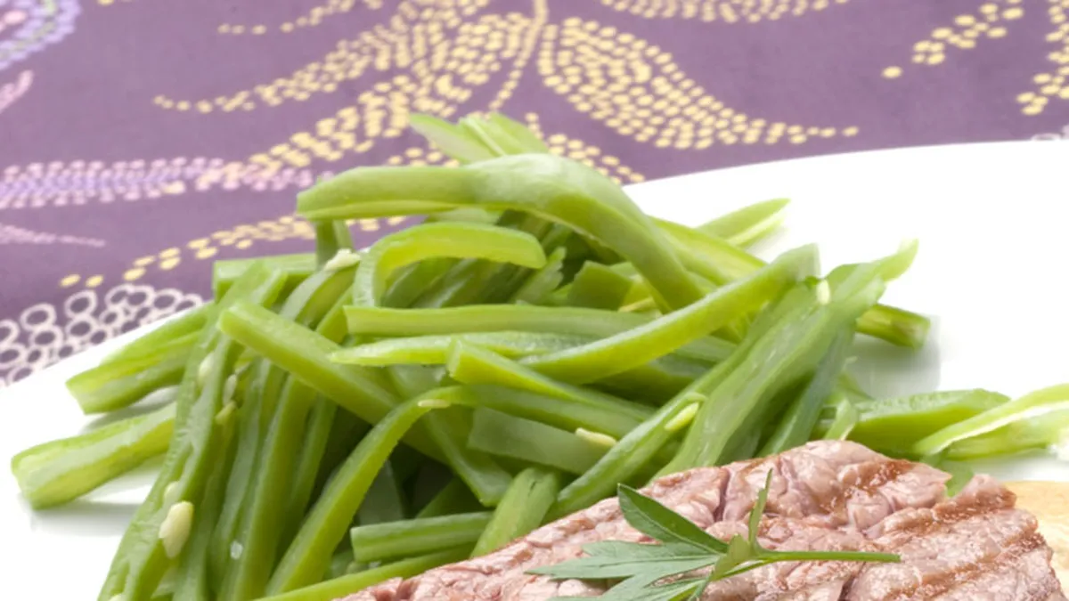 Completa y exigente preparación de Karlos Arguiñano: Solomillo a la pimienta negra con chalotas y judías verdes.