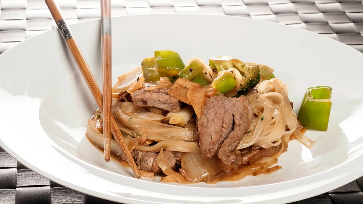 Bruno Oteiza prepara una receta rápida y sencilla en el wok de ternera, fideos de arroz, pimiento, cebolla, brócoli y brotes de bambú con soja, miel y aceite de sésamo.