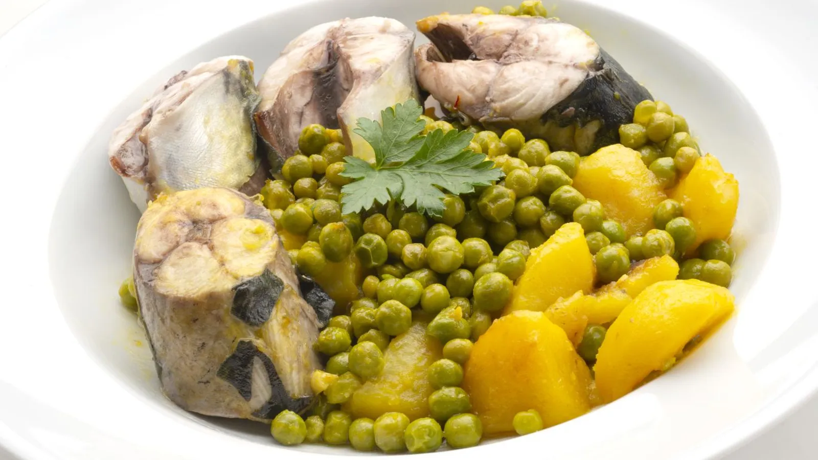 6. Sirve la cazuela de caballa con guisantes