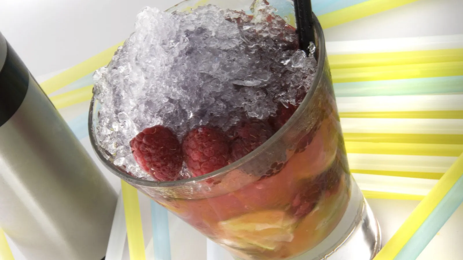 Elaboración de la Caipiroska de frambuesa (cóctel con alcohol):