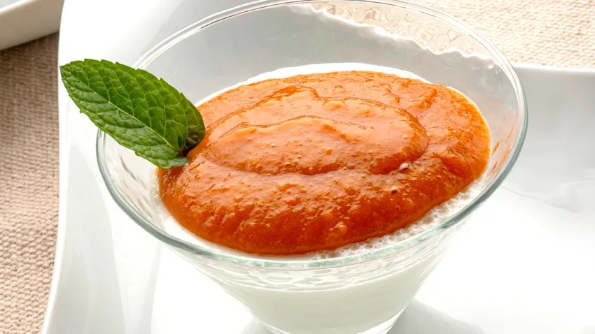 Cuajada con crema de albaricoque, receta dulce fácil de Arguiñano