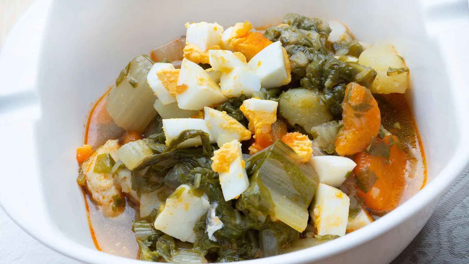 Acelgas con bacalao y huevo cocido