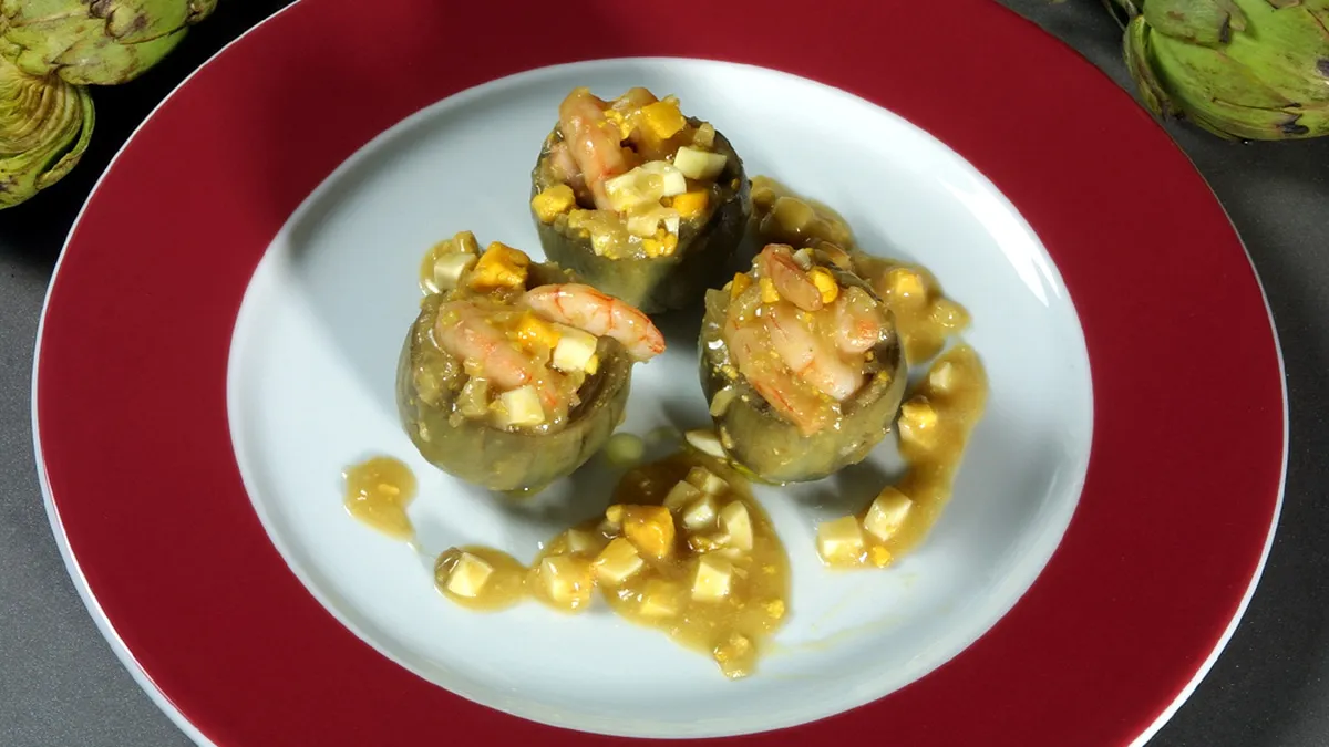 Alcachofas rellenas de gambas