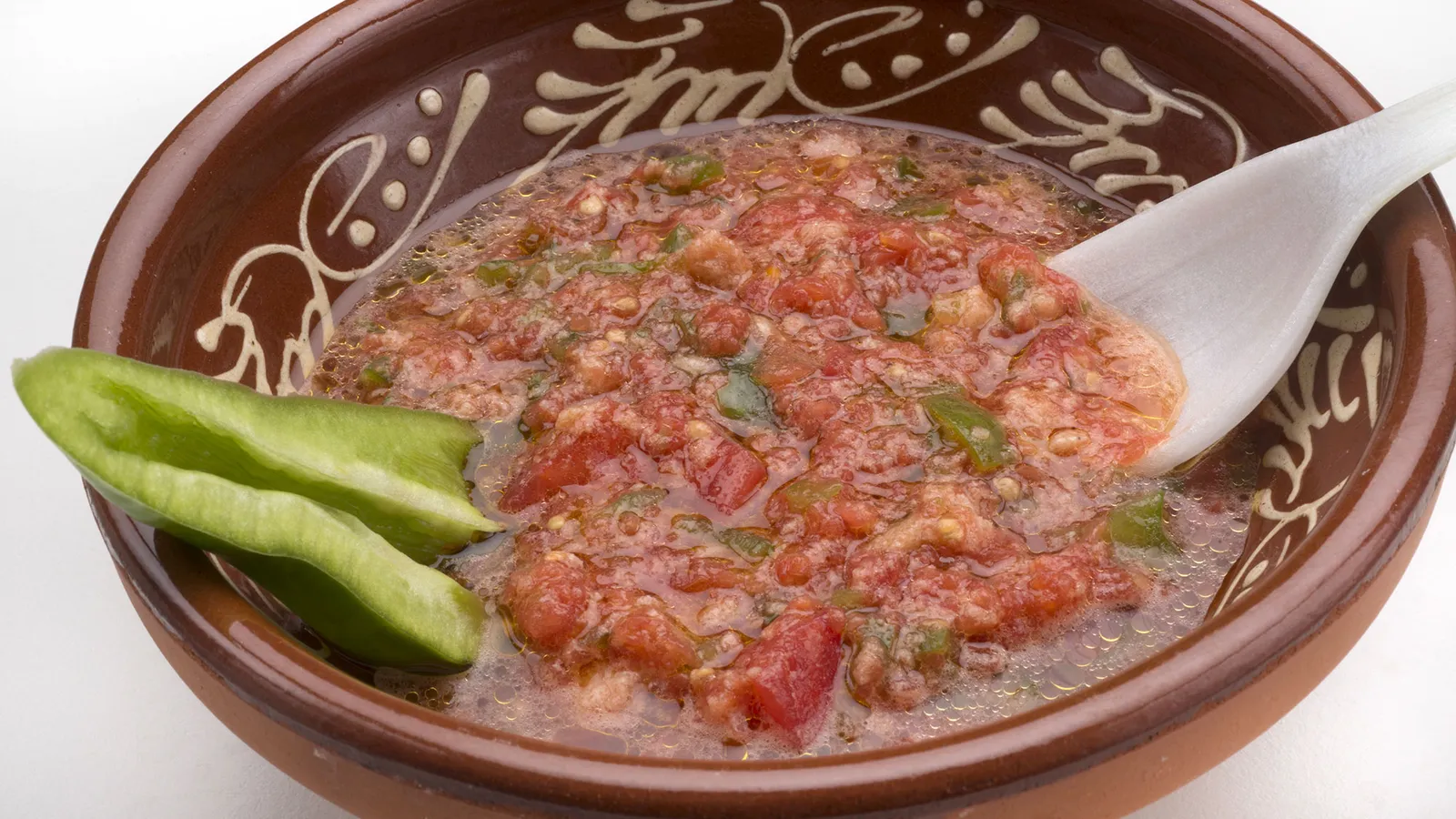 Sirve el arranque roteño y acompáñalo con los trozos de pimiento y de cebolleta.