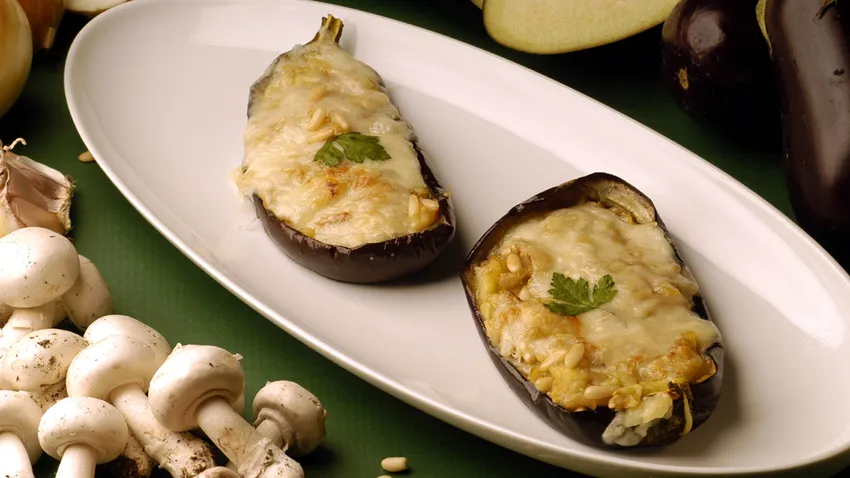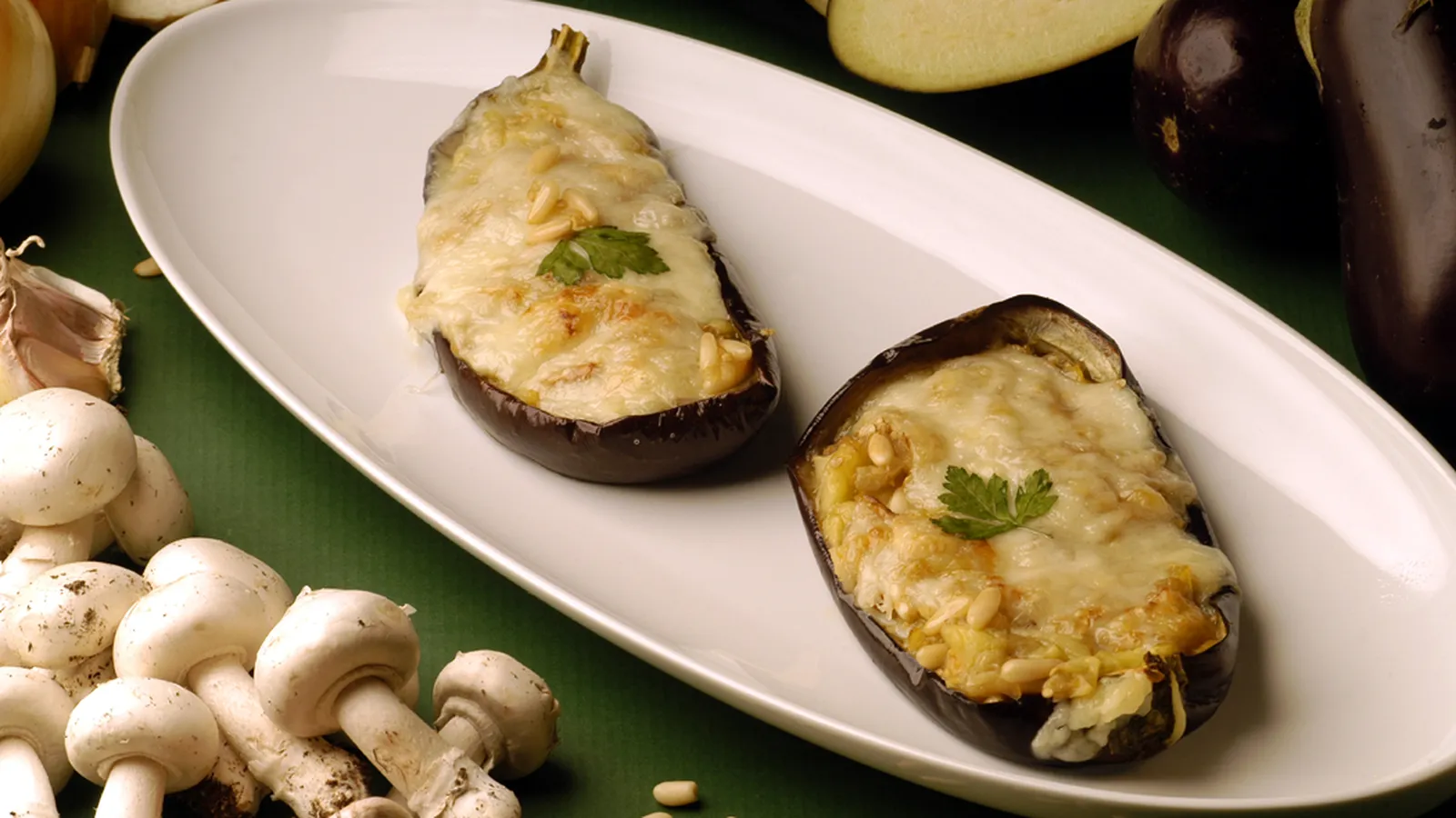 Deliciosa receta de berenjenas rellenas de champiñón y piñones elaborada por Karlos Arguiñano.