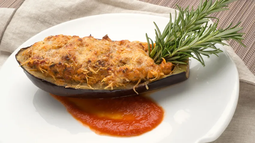 Elaboración de la receta de Berenjenas rellenas de salchichas: