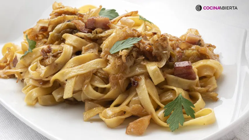 Compartimos una sencilla y saludable receta muy fácil de preparar: Berza salteada con tallarines, un plato de pasta y en el que utilizaremos pocos y económicos ingredientes; una elaboración que se prepara en Polonia, República Checa o Hungría conocida con diferentes nombres (pasta con repollo) y que en esta ocasión la prepara Karlos Arguiñano paso a paso.