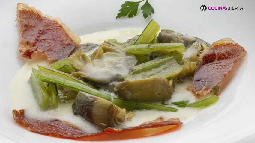 Receta de borrajas y alcachofas con crema de patata