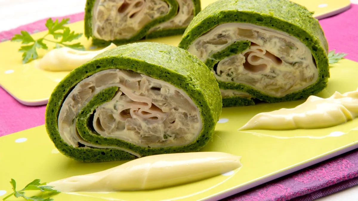 Receta de Karlos Arguiñano de un original brazo de gitano elaborado con bizcocho de espinacas y relleno de pavo, setas y queso. Un plato diferente para sorprender a tus invitados.
