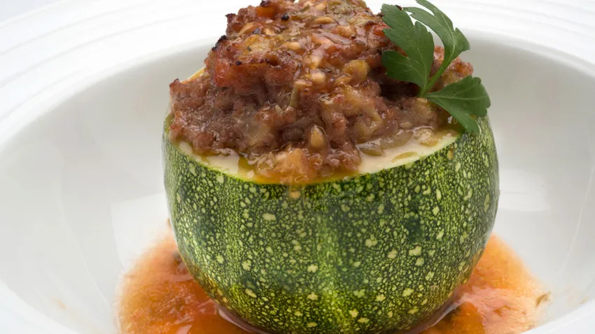 El cocinero Karlos Arguiñano muestra cómo preparar una receta de calabacines rellenos de carne picada al tomillo y gratinados en el horno.