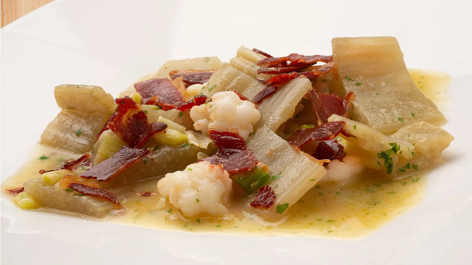Elaboración de la receta Cardo con cigalitas: